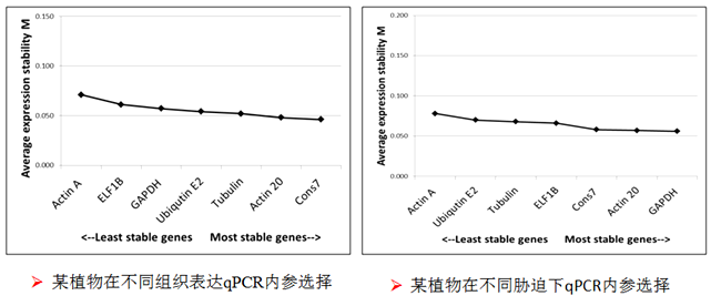 許多科研人員及公司,隨便選擇一種內(nèi)參,根本不考慮內(nèi)參的穩(wěn)定與否,就進(jìn)行qPCR分析研究,往往得出與實(shí)際相反的結(jié)論。本公司針對(duì)每個(gè)模式生物,準(zhǔn)備了至少5種候選內(nèi)參基因引物,針對(duì)每一個(gè)qPCR實(shí)驗(yàn),采用gNorm或Normfinder軟件篩選最為穩(wěn)定的內(nèi)參引物,從而實(shí)現(xiàn)qPCR數(shù)據(jù)的可靠性和準(zhǔn)確性。